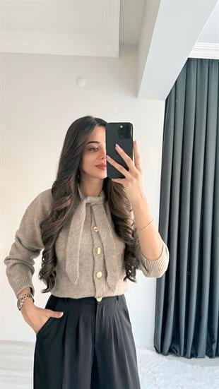 Akra Açık Vizon Melanj Önü Bağlamalı Hırka (SDU2204Std)