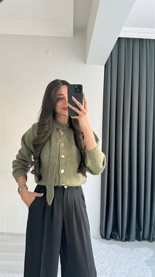 Akra Yeşil Melanj Önü Bağlamalı Hırka (SDU2205Std)
