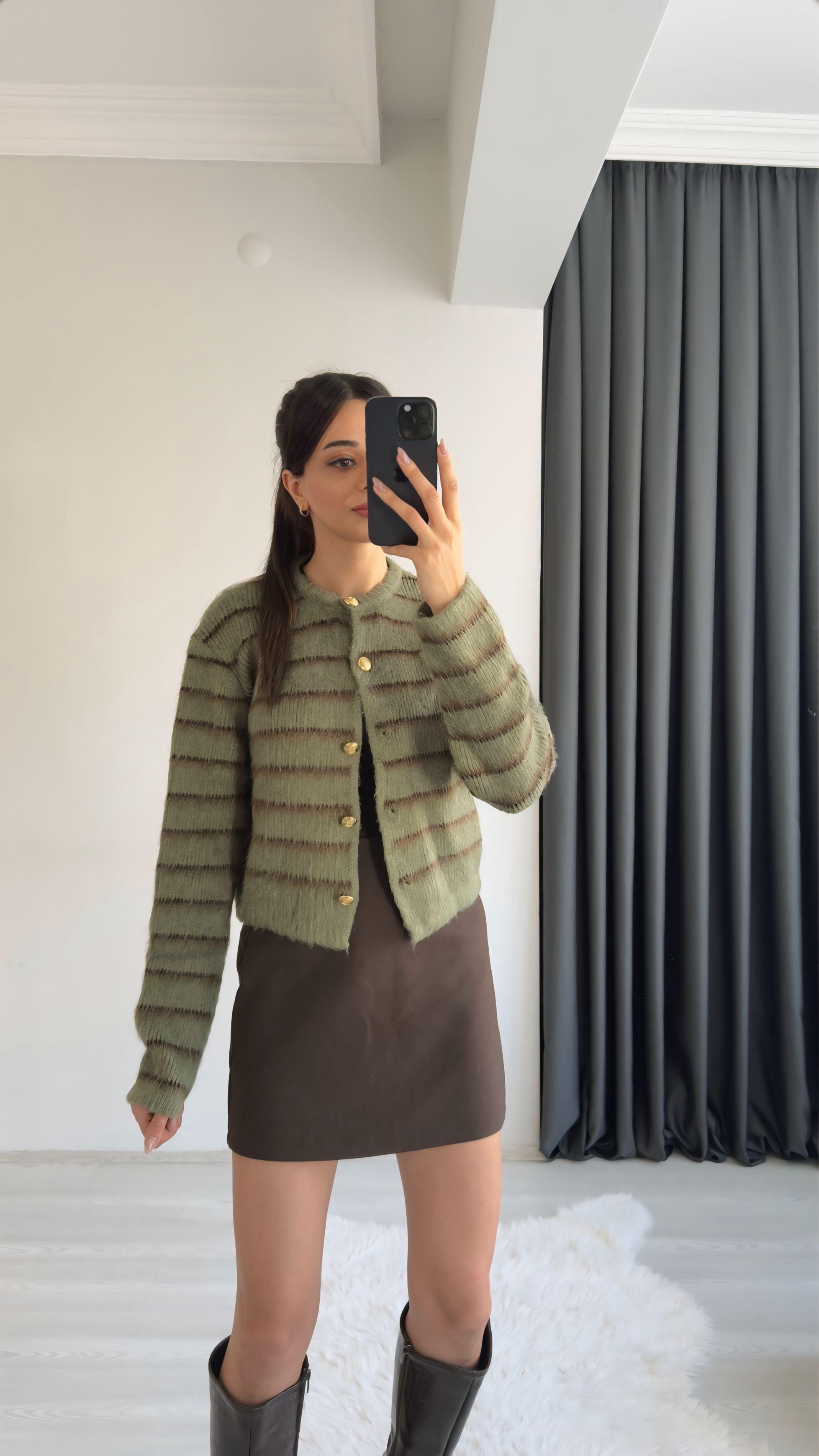 Arthur Acı Kahve Yeşil Gold Düğmeli Hırka (SDU2197Std)