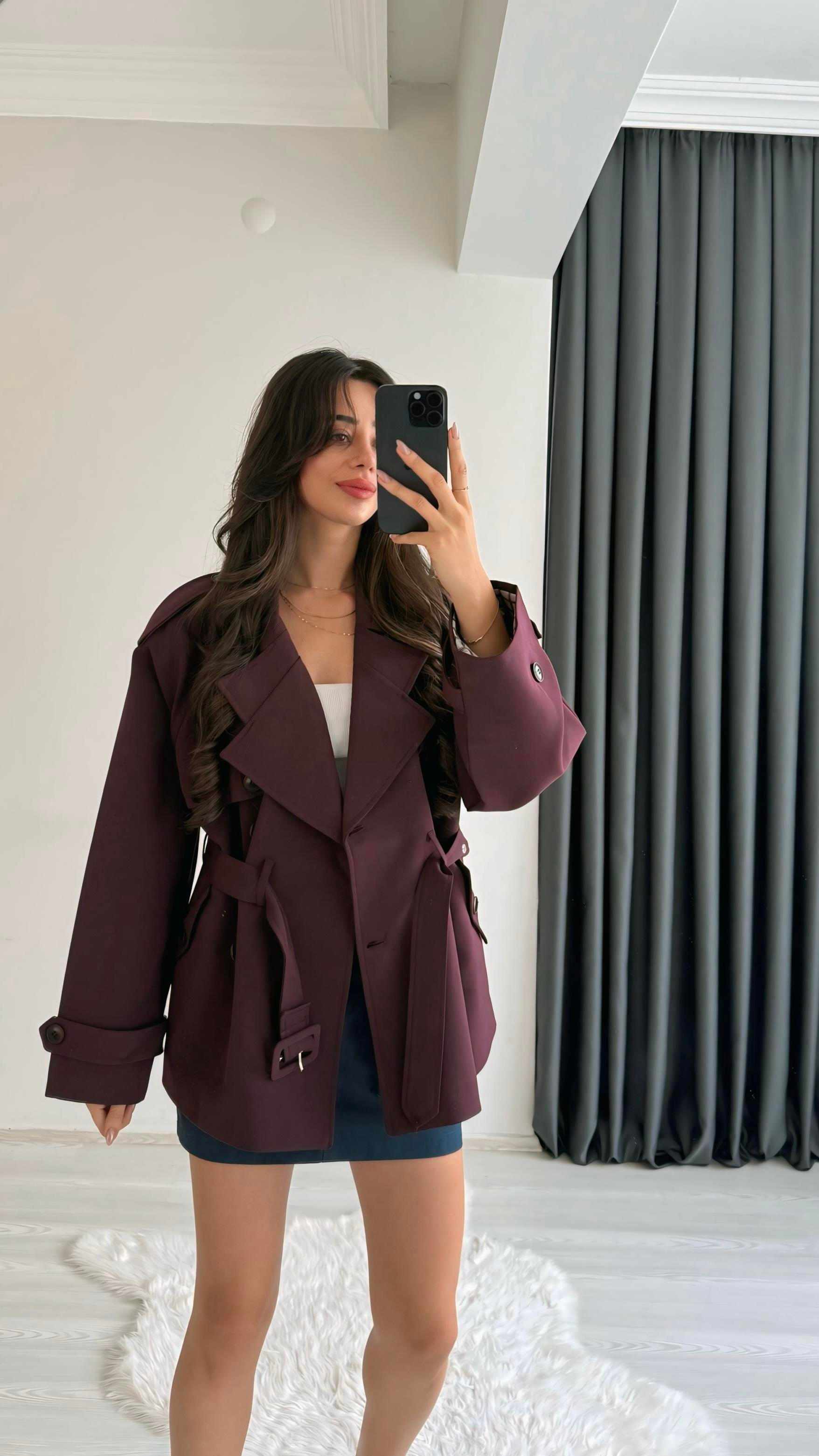 Fergus Premium Seri Lüx Poliviskon Trençkot Orta Boy Mürdüm (SDU2229STD)