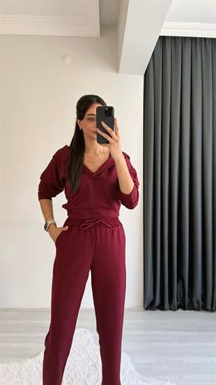 Jasper Oys Modal Kumaş Kapşonlu Takım Bordo (SDU2237s)