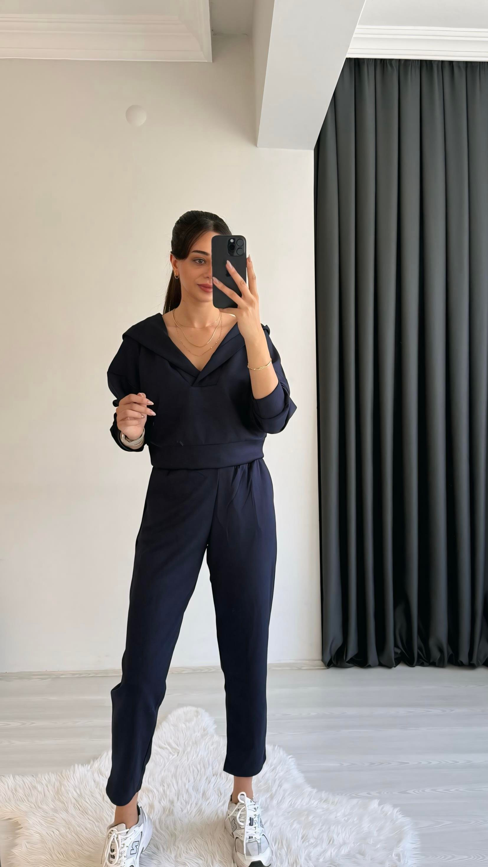 Jasper Oys Modal Kumaş Kapşonlu Takım Lacivert (SDU2238s)