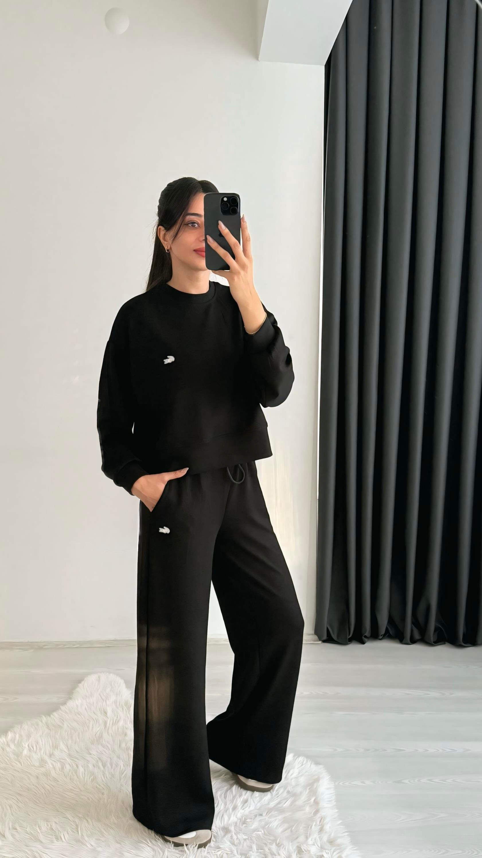 Lacost Modal Kumaş Sweatshirtli Eşofman Takımı Siyah