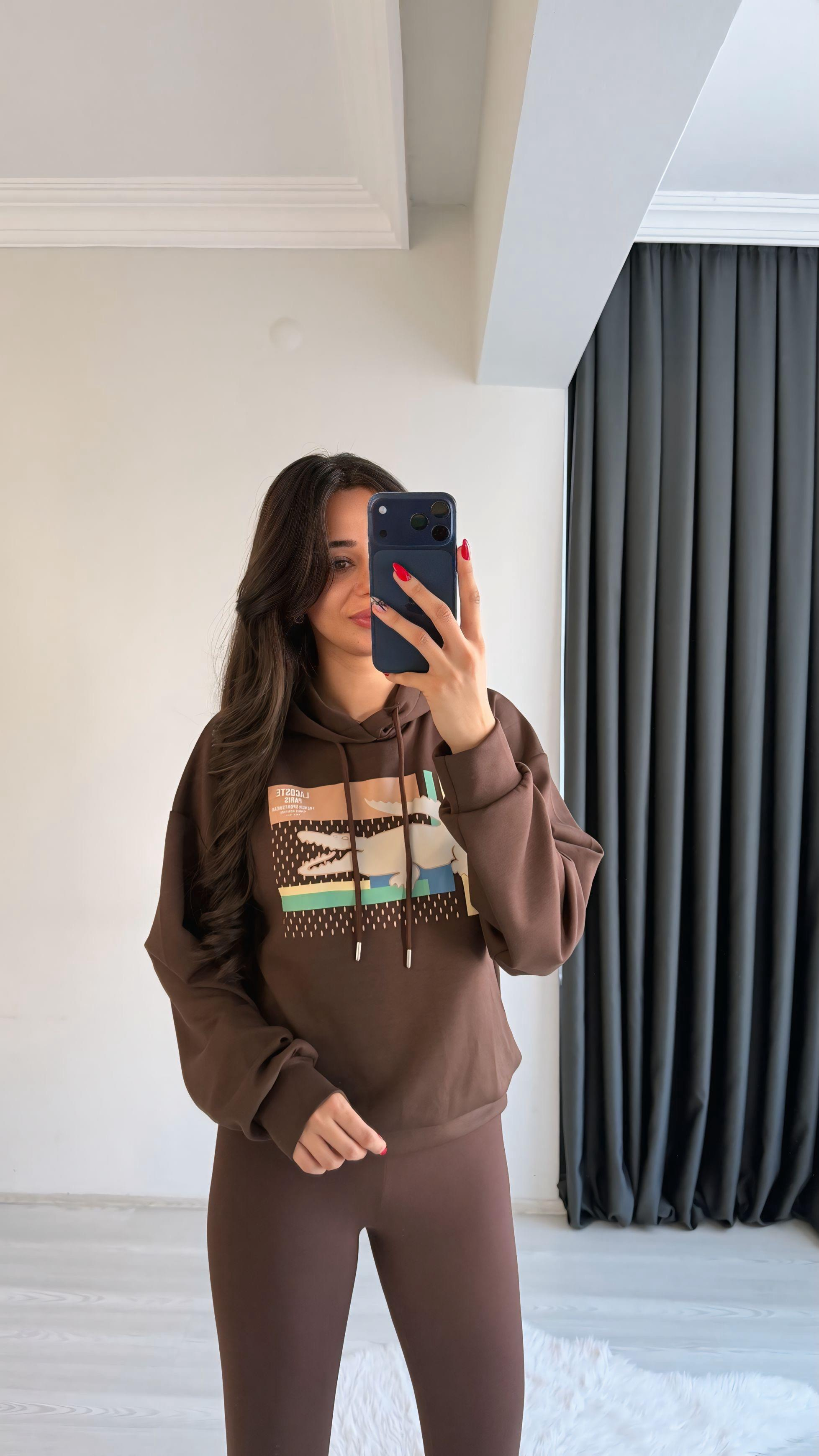Lacostef Kapşonlu Baskılı Sweatshirt Kahve (SDU22153s)