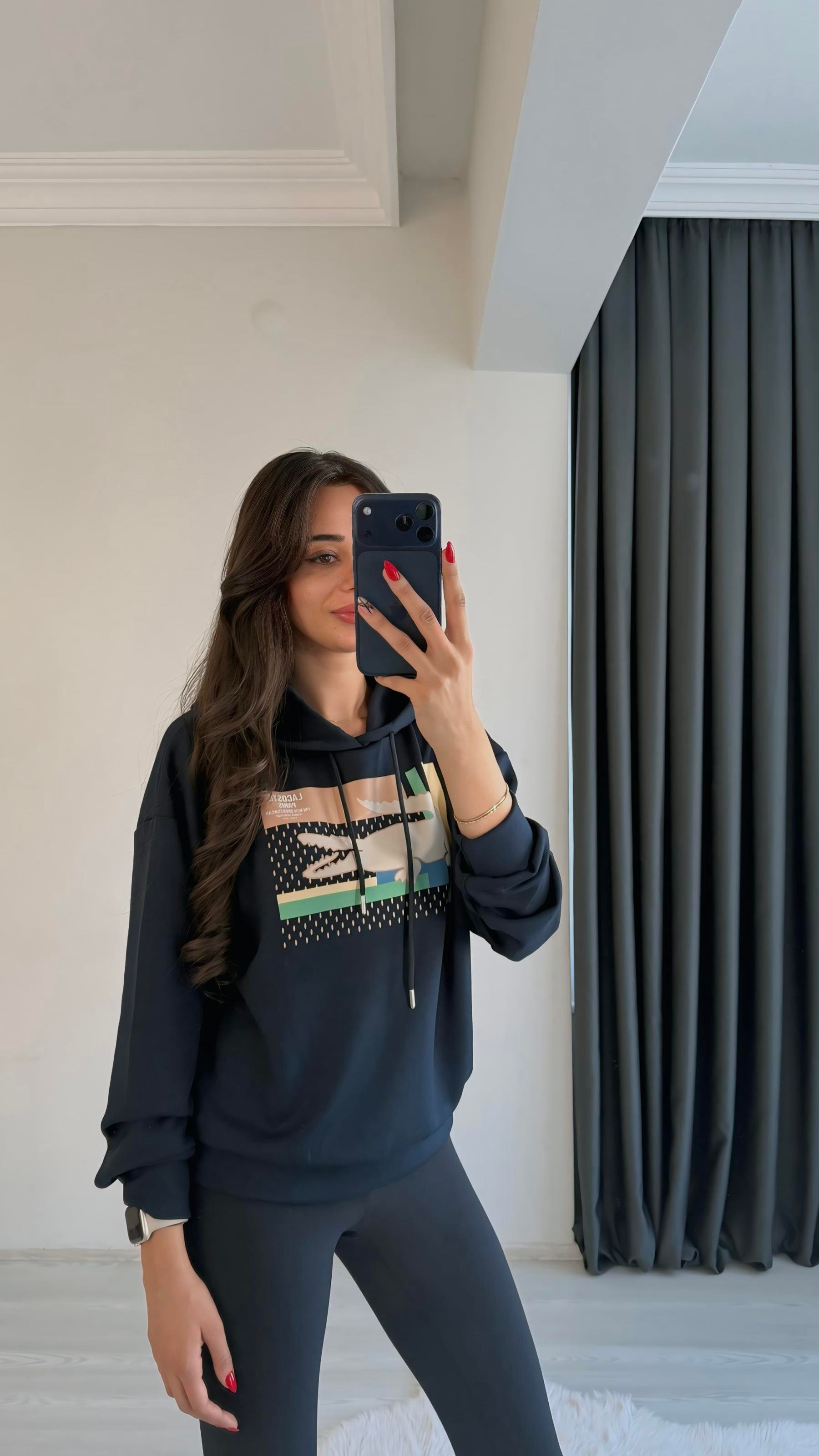 Lacostef Kapşonlu Baskılı Sweatshirt Lacivert