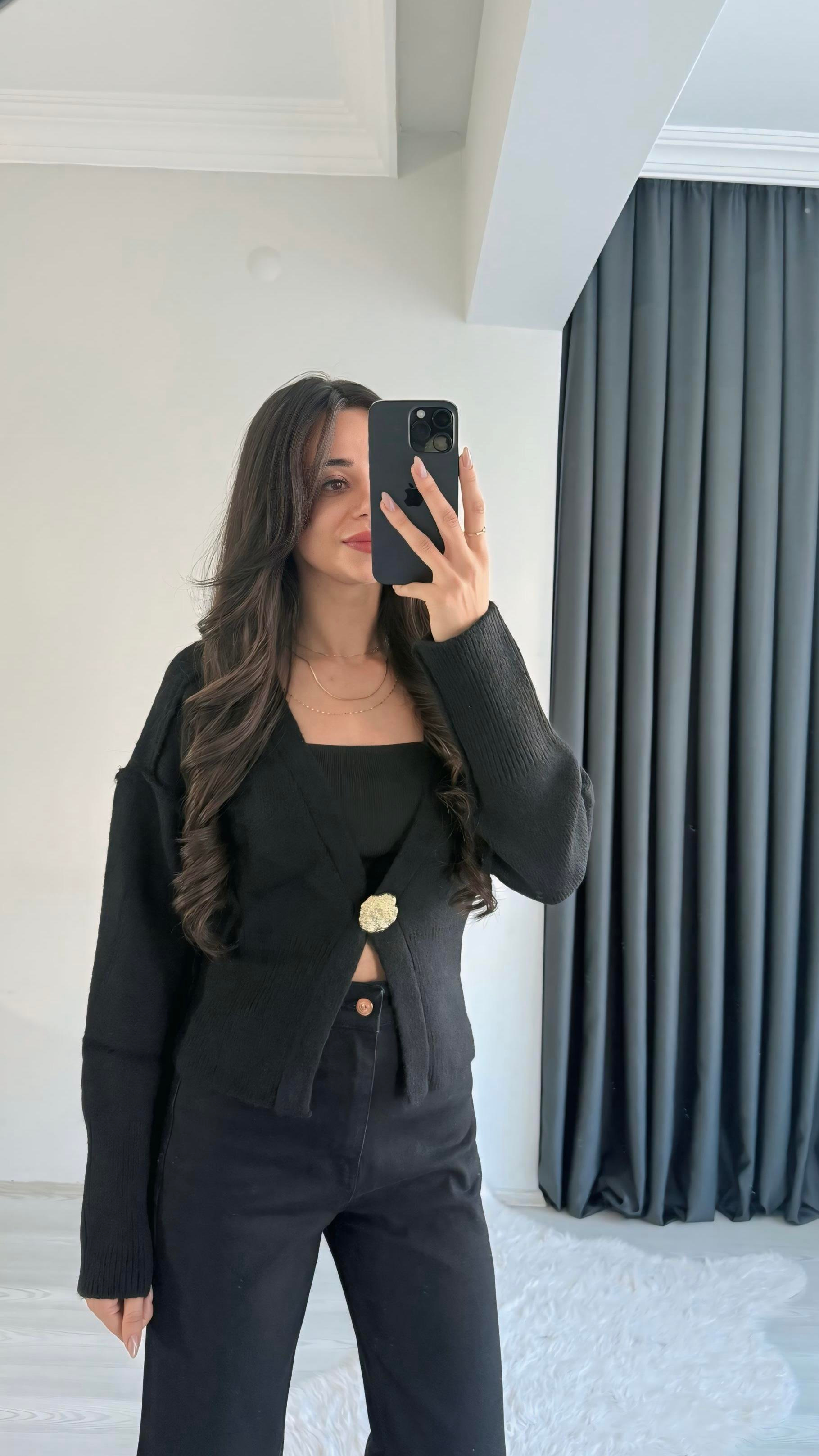 Liente Gold Düğme Detaylı Acı Kahve Hırka Liente Gold Düğme Detaylı Siyah Hırka