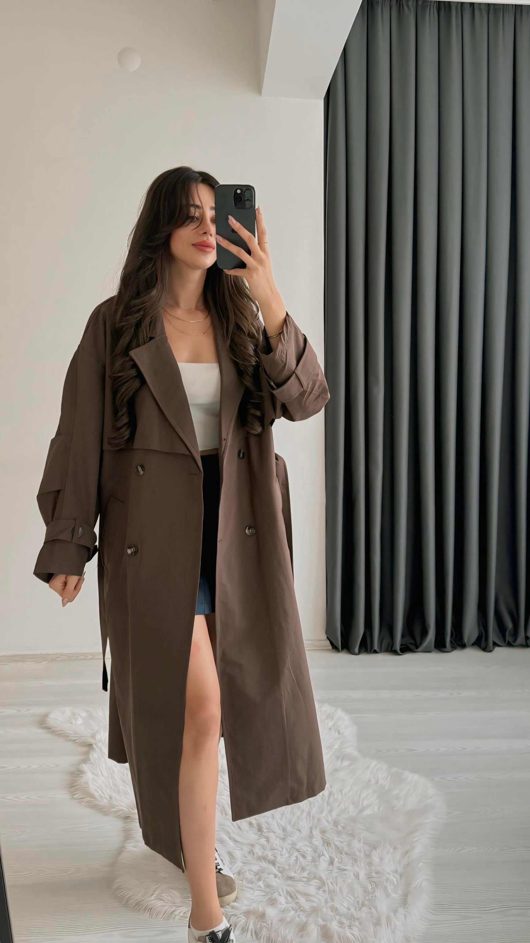 Loyal Premium Seri Lüx Kalite Trençkot Uzun Boy Kahve (SDU2230STD)