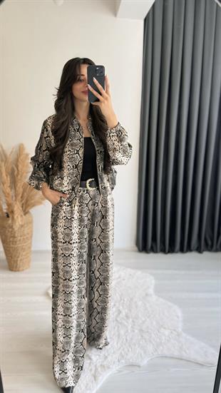 Priste Saten Premium Seri Leopar Desenli Pantalon Ve Ceket Takım