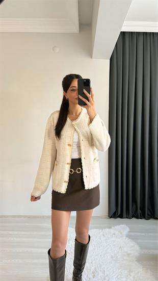 Sammy Premium Gold Geçişli Triko Hırka Ceket Krem (SDU2200Std)