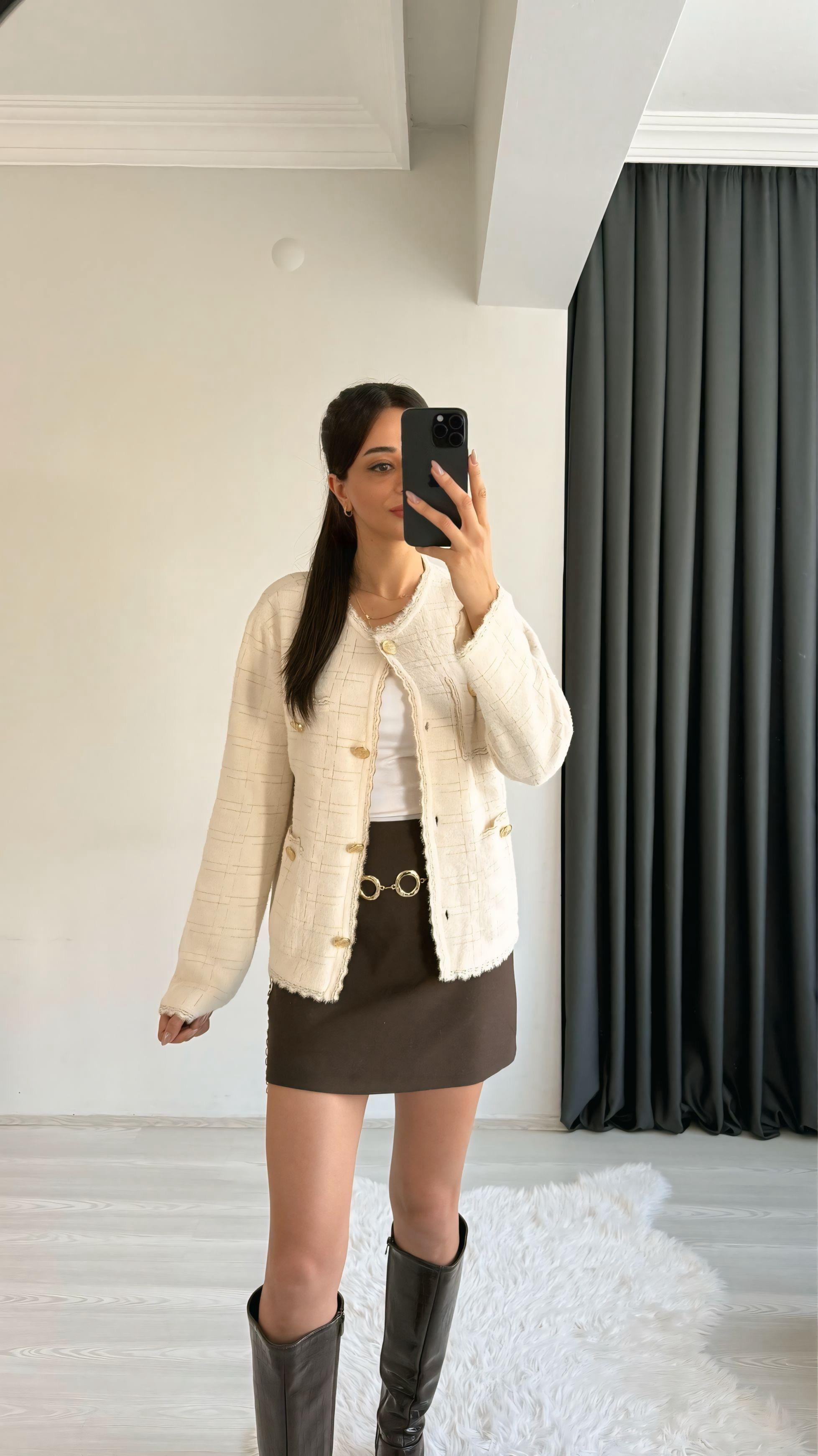 Sammy Premium Gold Geçişli Triko Hırka Ceket Krem