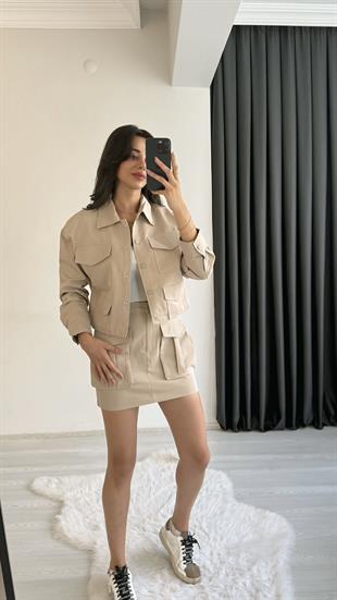 Yesenia Bej Gabardin Tensel Cepli Takım (SDU2214S)