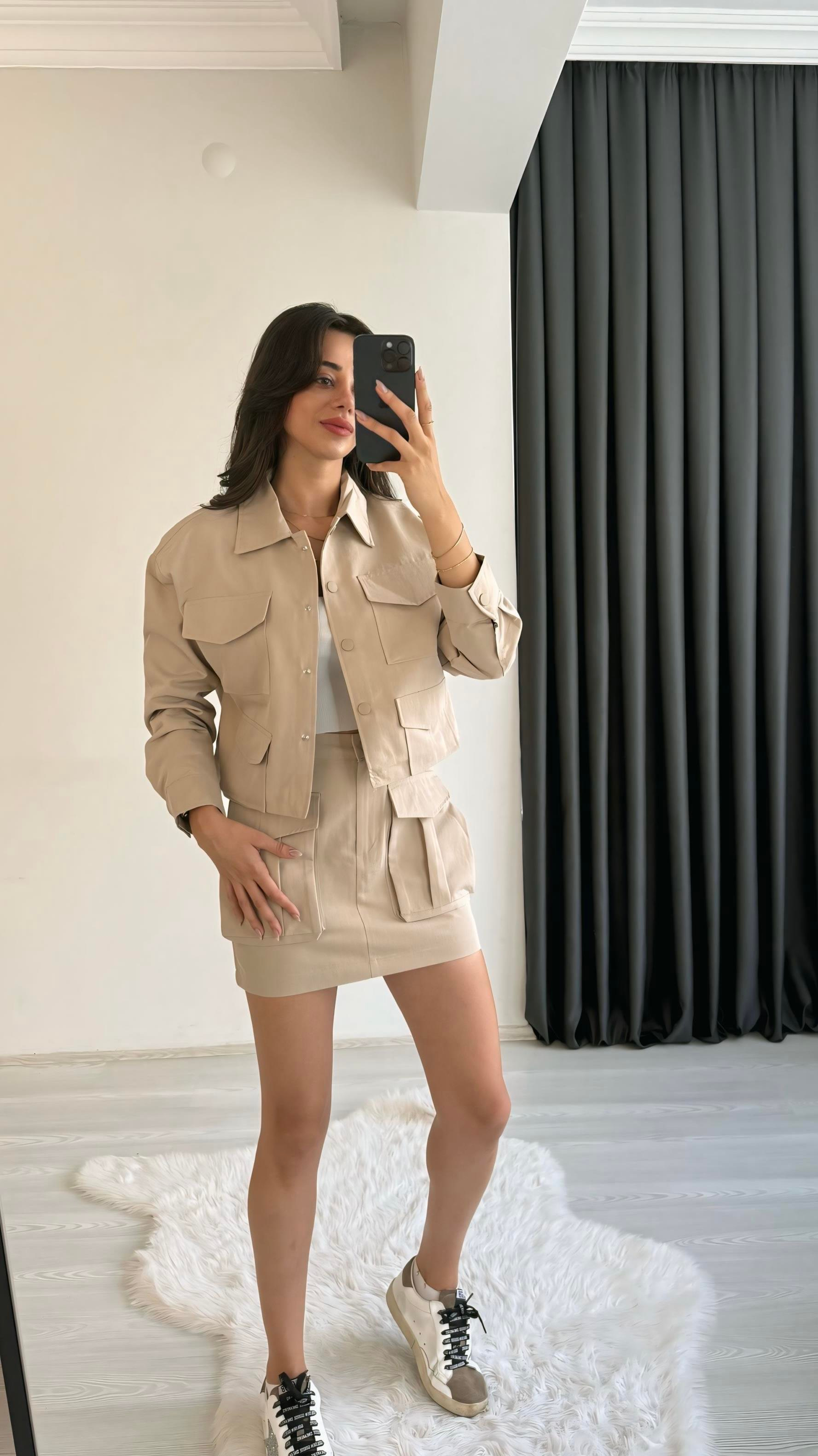 Yesenia Bej Gabardin Tensel Cepli Takım