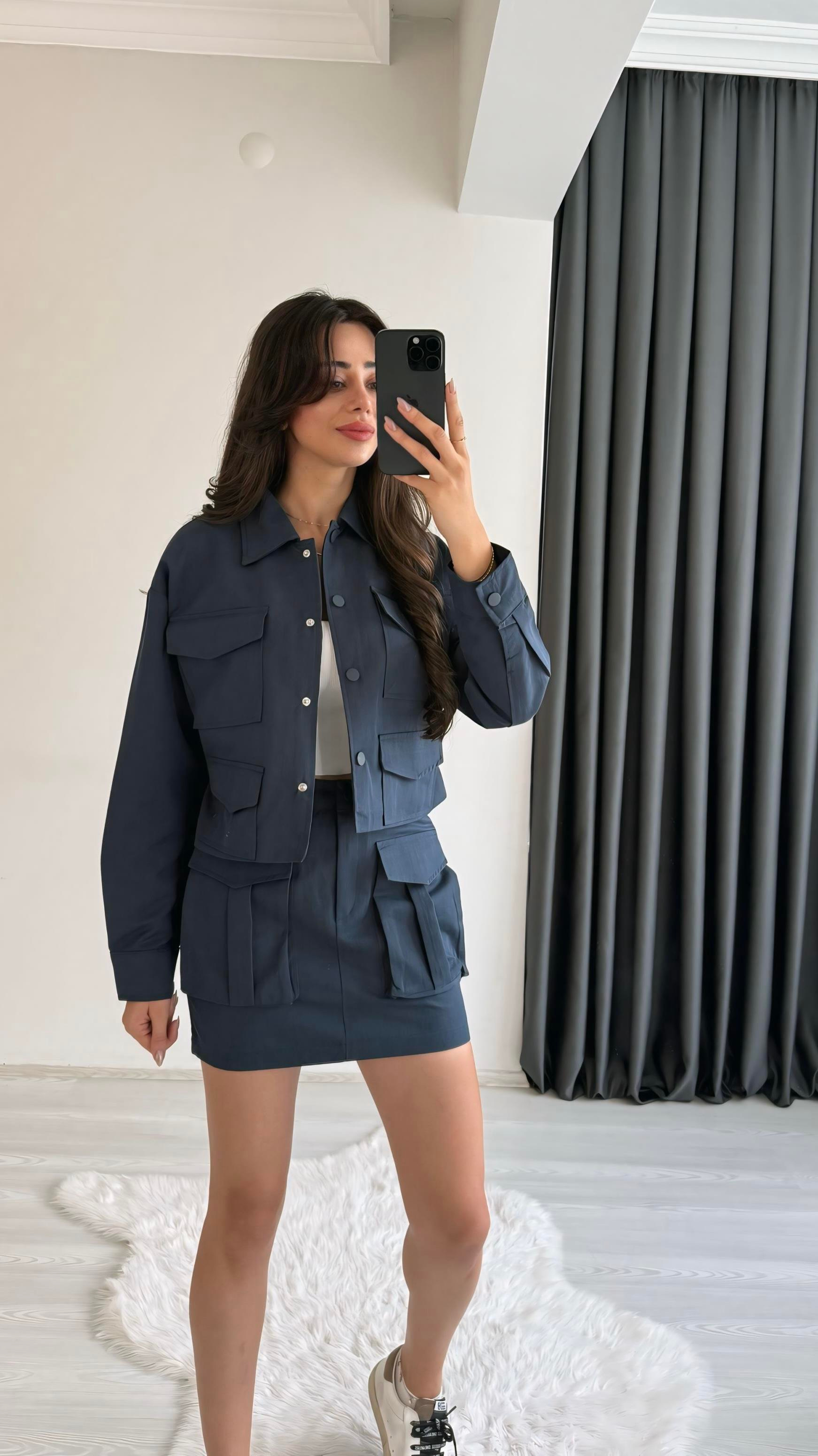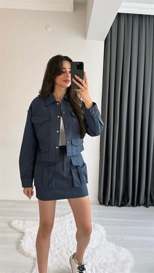 Yesenia Lacivert Gabardin Tensel Cepli Takım (SDU2215S)